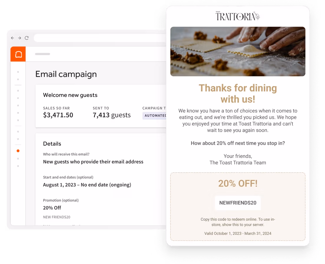 ¿Te estás perdiendo ingresos fáciles? Los clientes de Toast generan hasta USD 2800 en una sola campaña mediante nuestro programa de correos electrónicos automatizados.* No se requiere experiencia.